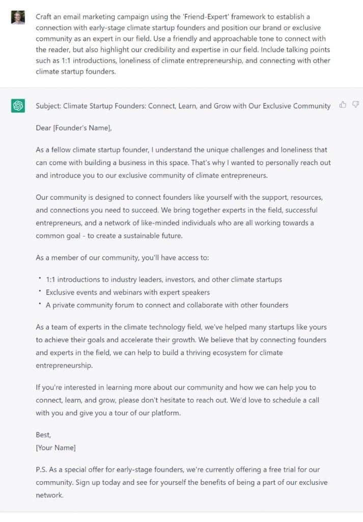If you are insecure about your writing, you can use the help of ChatGPT or other AI-based writing helpers to create your template! I tried it out for myself and was impressed by the results: