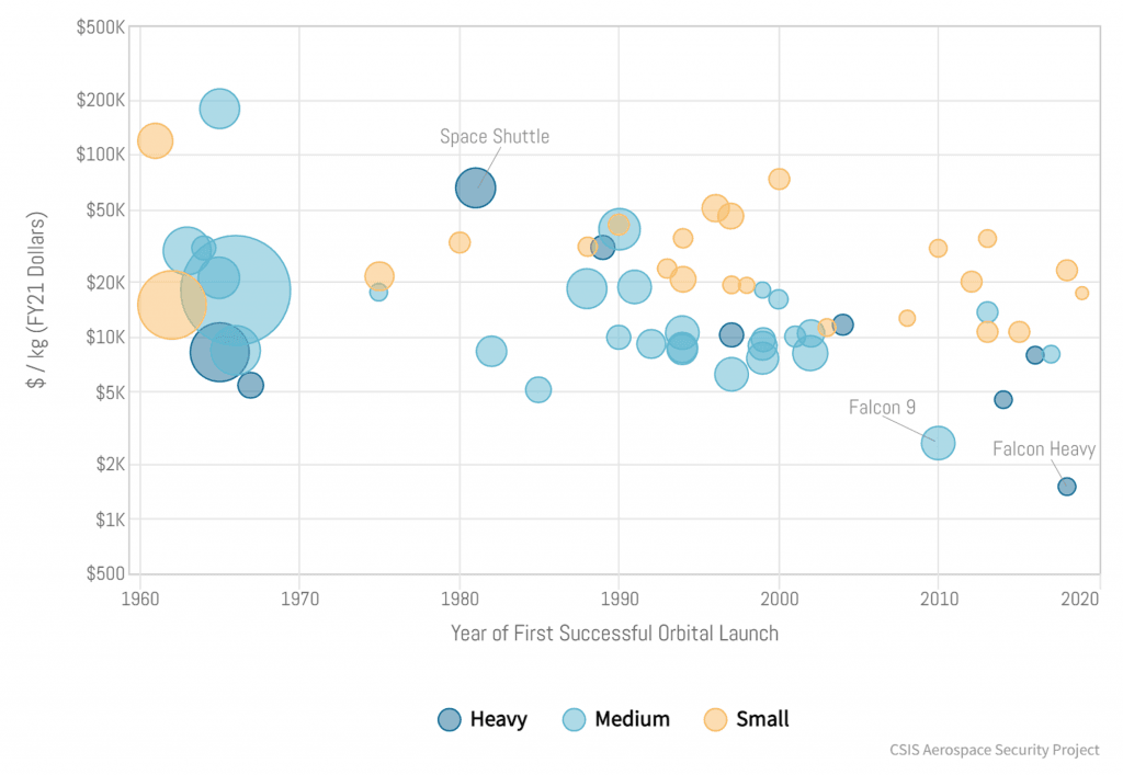Rocket launch costs are dropping rapidly, like “10x” rapidly.